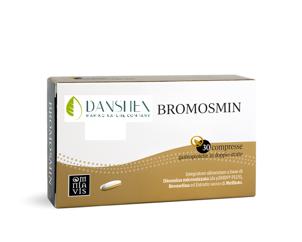Bromosmin è un integratore alimentare a base di Diosmina micronizzata (da μSMIN® PLUS), Bromelina ed Estratto secco di Meliloto. Il Meliloto contribuisce alla funzionalità della circolazione venosa (funzionalità del plesso emorroidario) ed alla funzionalità del microcircolo.