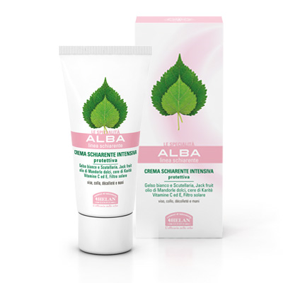 - Un complesso schiarente illuminante arricchito dagli estratti di Gelso bianco, Scutellaria e Jack fruit che, agendo in antagonismo con la melanina, ne diminuisce la naturale produzione