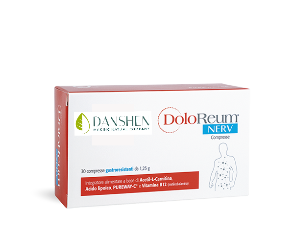 DoloReum Nerv è un integratore alimentare in compresse gastroresistenti a base di Acetil-L-Carnitina, Acido Lipoico, Vitamina C PureWay-C® e Vitamina B12 (metilcobalamina) ad alta biodisponibilità.