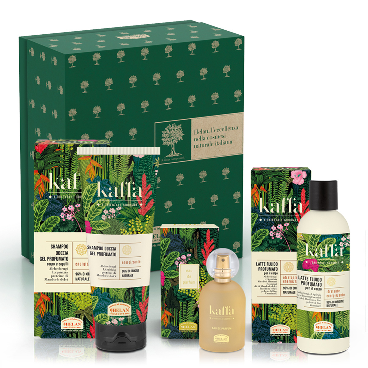 La confezione contiene i seguenti prodotti della Linea KAFFA:
