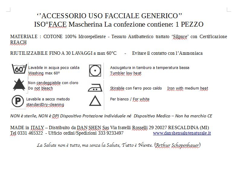NON è sterile, NON è DPI Dispositivo Protezione Individuale né Dispositivo Medico – Non ha marchio CE