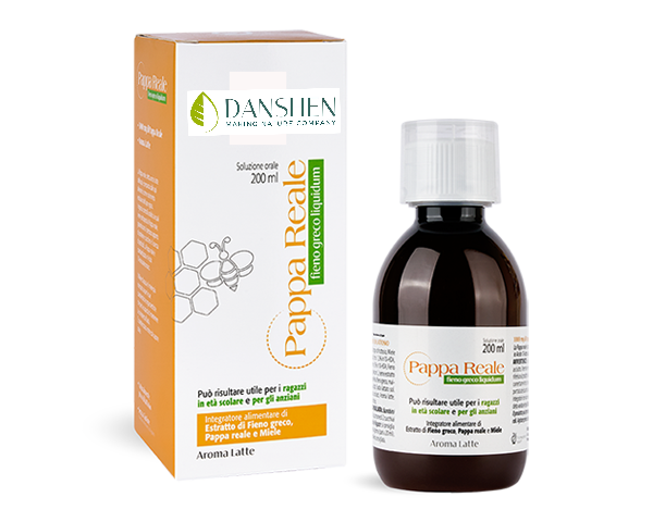 Acqua, Sciroppo di fruttosio, Miele d'acacia, Pappa reale fresca, Pappa reale liofilizzata, Fieno greco (Trigonella foenum-graecum L.) seme estratto secco tit. min. 0,5% in trigonellina (fieno greco, maltodestrina), Correttore di acidità: Sodio lattato sol. 60%, Conservante: Potassio sorbato, Aroma latte. Correttore di acidità: acido citrico.